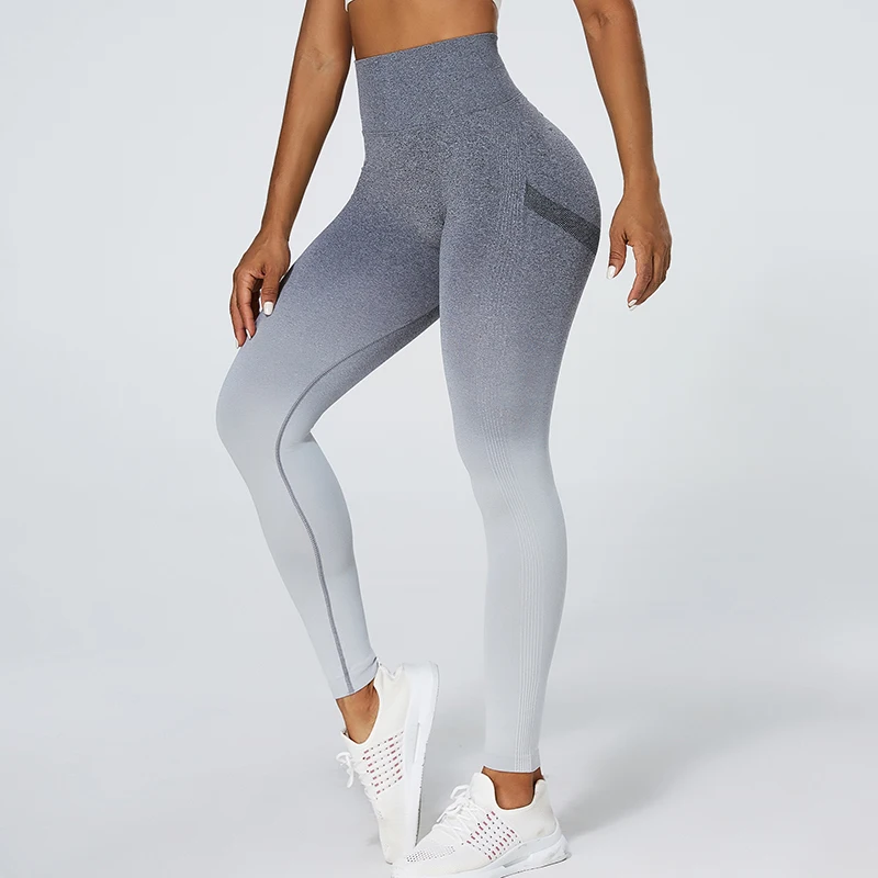 Mallas marca nalga de compresión elásticas, color degradado para mujer, leggings de entrenamiento, fitness, trotar, correr, gimnasio, ropa deportiva, pantalones de Yoga.